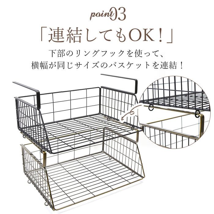 ・下部のリングフックを使って、横幅が同じサイズのバスケットを連結!クロスやマグなどを、取り出しやすく収納できて便利。