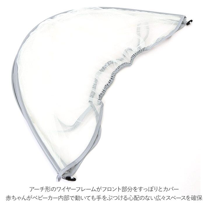 ・アーチ形のワイヤーフレームがフロント部分をすっぽりとカバー。赤ちゃんがベビーカー内部で動いても手をぶつける心配のない広々スペースを確保。