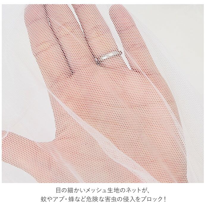 ・目の細かいメッシュ生地のネットが、蚊やアブ・蜂など危険な害虫の侵入をブロック!