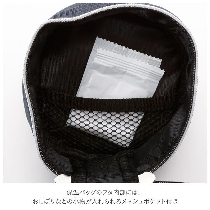 ※保温バッグのフタ内部には、おしぼりなどの小物が入れられるメッシュポケット付き。