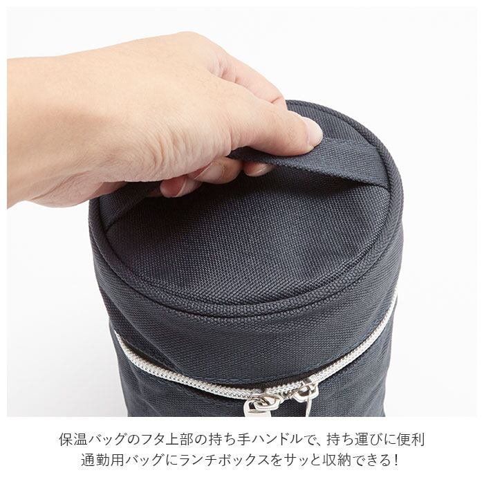 ・保温バッグのフタ上部の持ち手ハンドルで、持ち運びに便利。通勤用バッグにランチボックスをサッと収納できる!