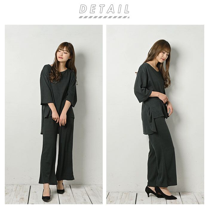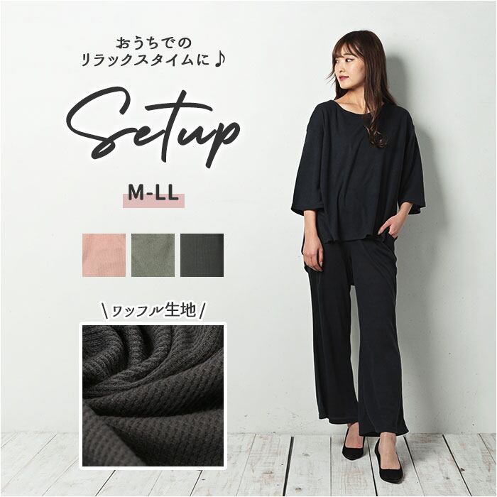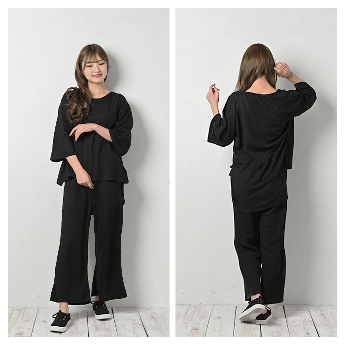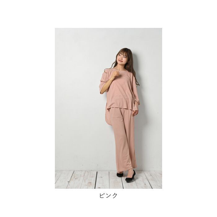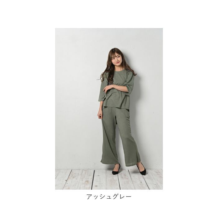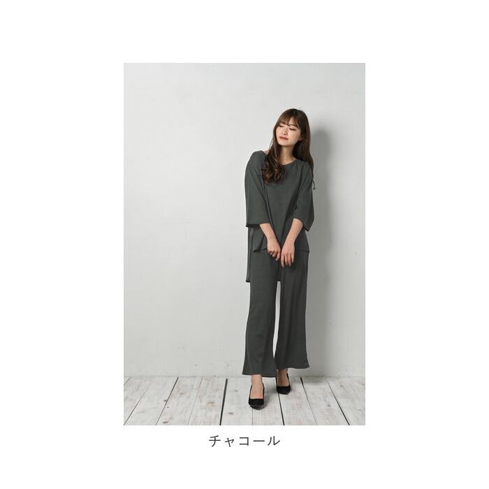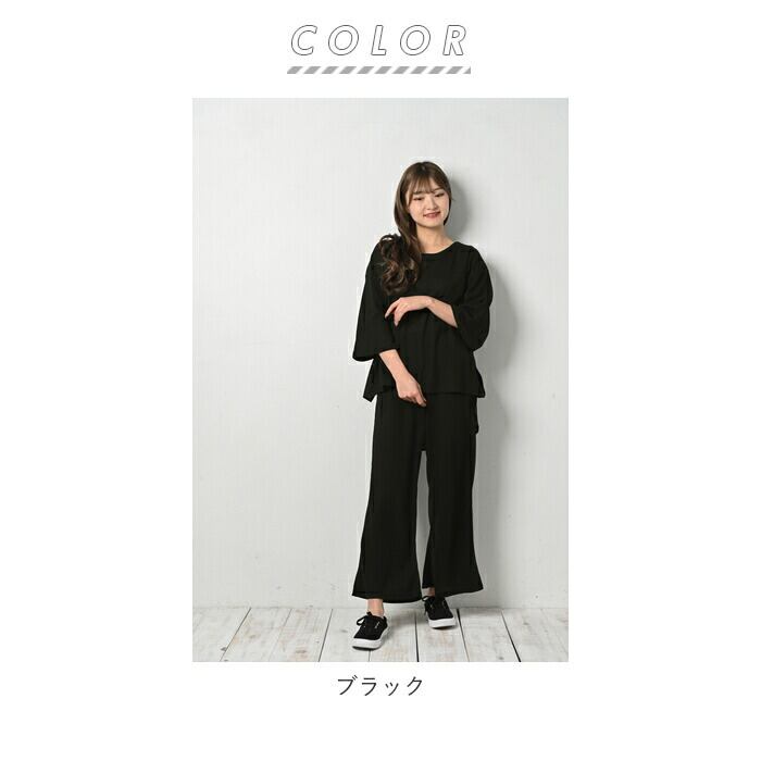 ・柔らかい肌触りと軽い着心地が気持ちいい♪5分袖トップスとワイドパンツのセットアップが新登場!