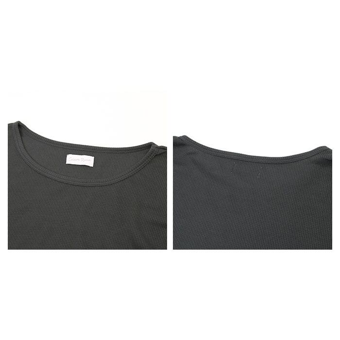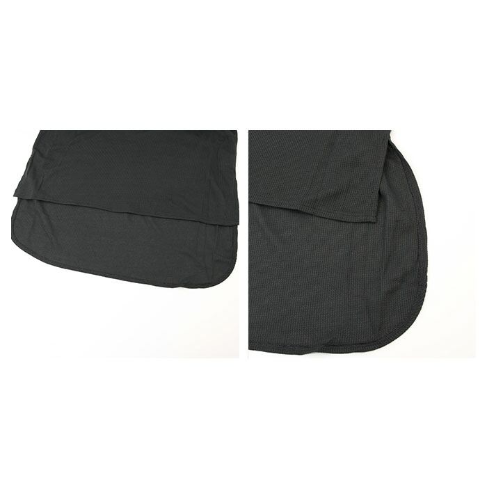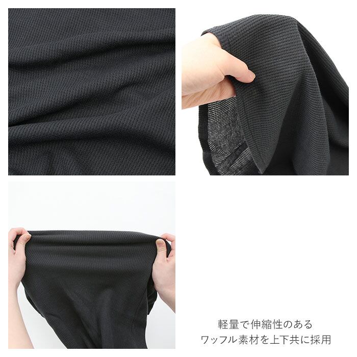 ・軽量で伸縮性のあるワッフル素材を上下共に採用。少し透け感のある質感が涼しい印象に。
