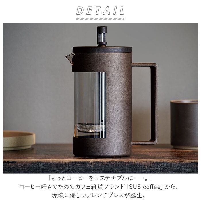 フレンチプレス 通販 コーヒープレス コーヒー用品 珈琲 シンプル おしゃれ アウトドア サスコーヒー SUS coffee エコ 再利用 サステナブル sdgs ギフト キッチン 雑貨