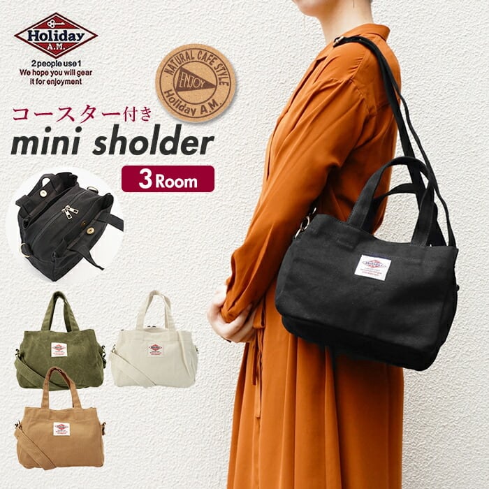 ・丈夫で素朴な風合いのキャンバス素材を使用した、Holiday A.M.(ホリデーエーエム)のミニショルダーバッグ。