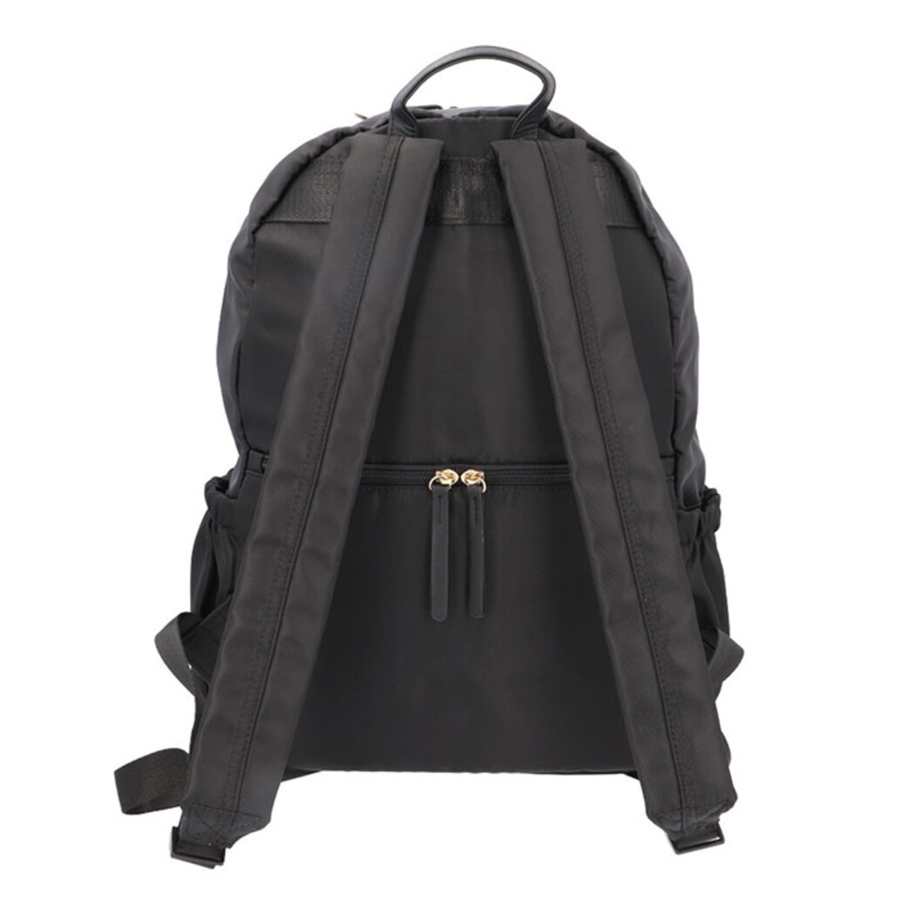 ・両サイドのマチ付きオープンポケットはゴムで伸縮する開口部。入れたものがズレ落ちにくく、折りたたみ傘やドリンクの収納が可能。
