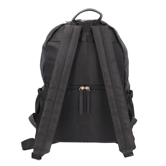 ・背面には長財布が入るダブルファスナー式のセキュリティポケットを配置。
