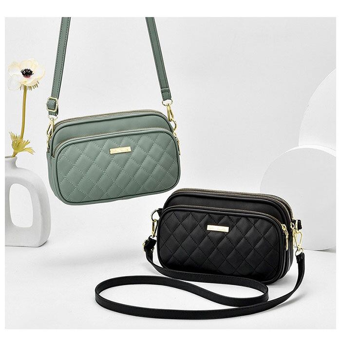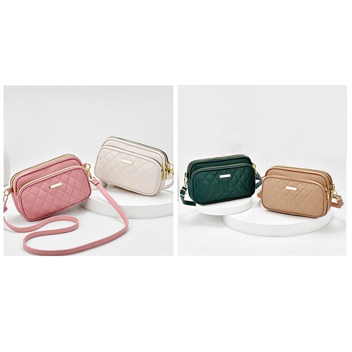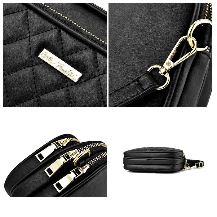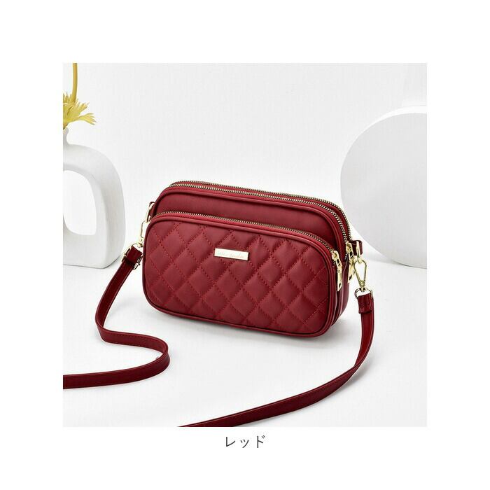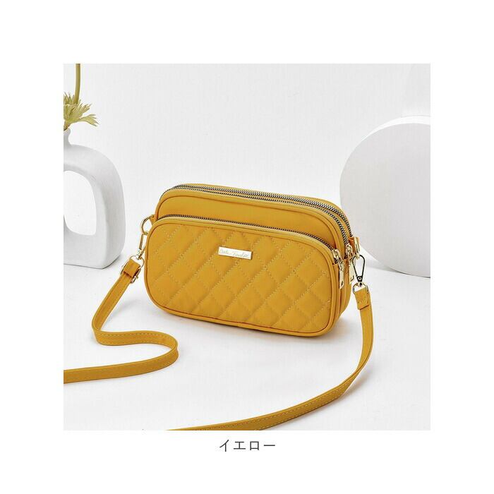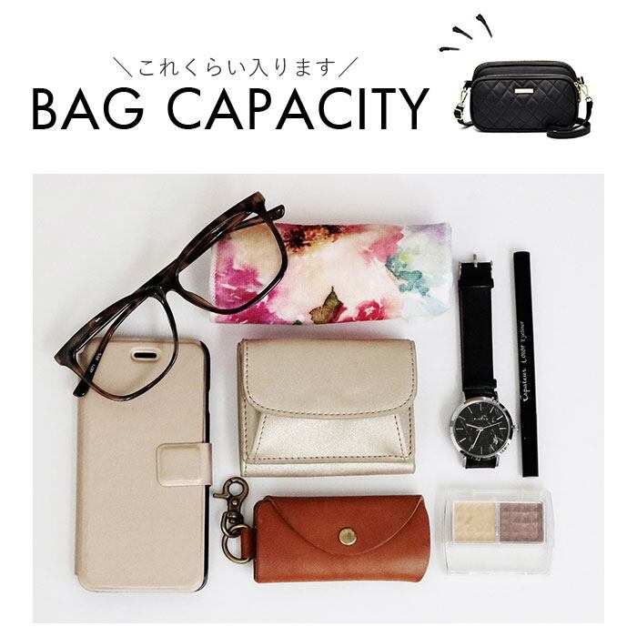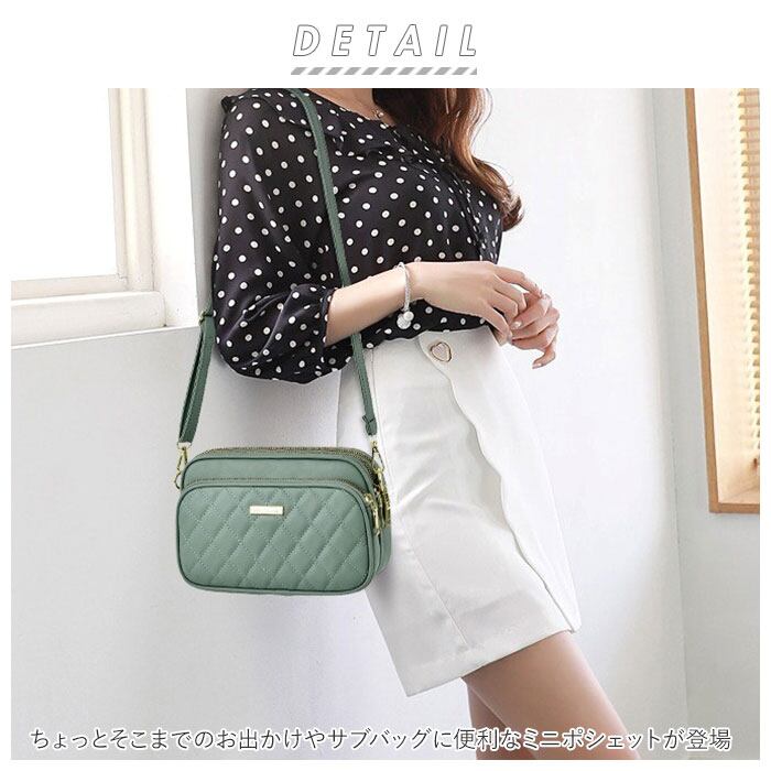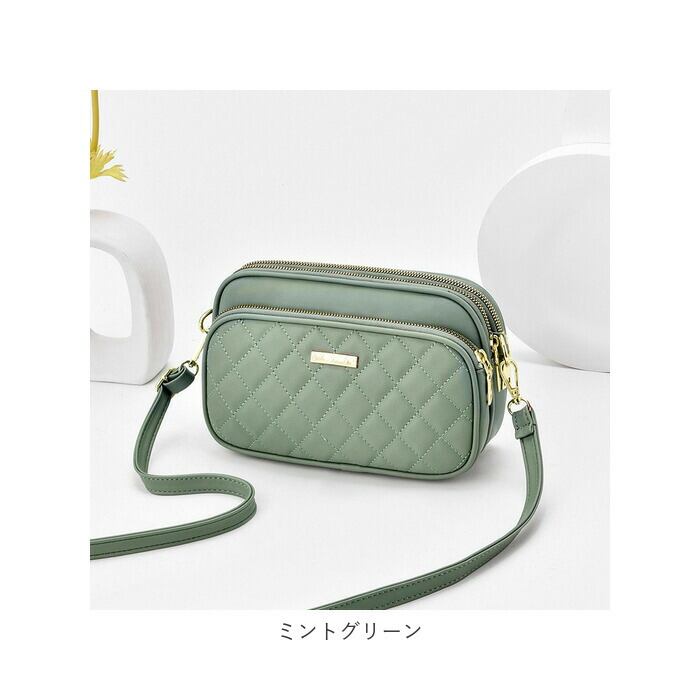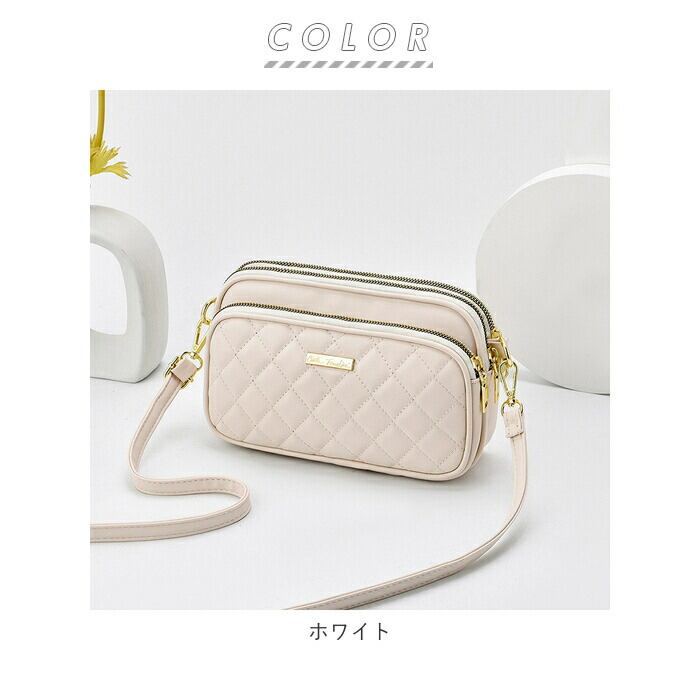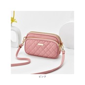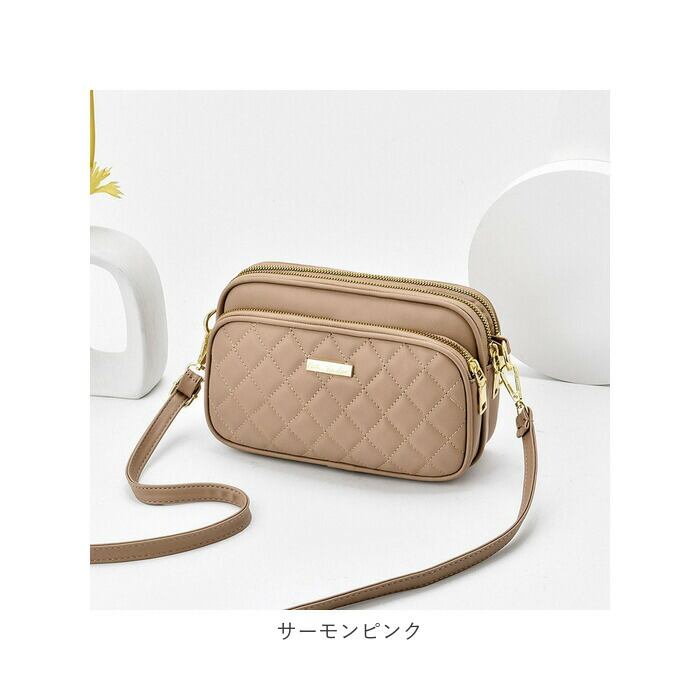 ・大きなキルティングが可愛いフロントにはファスナーポケットも付いており、小さいながらも小物をしっかり整理できるアイテム。