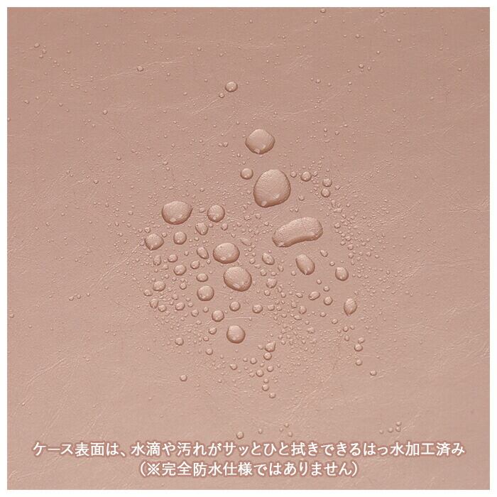 ・肌ざわりの滑らかなケース表面は、水滴や汚れがサッとひと拭きできるはっ水加工済み。外出先で急なにわか雨にあっても安心。(※完全防水仕様ではありません。)
