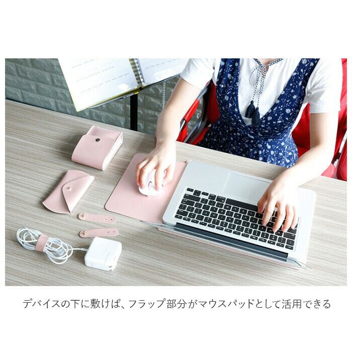 ・さらに、取り出した後にデバイスの下に敷けば、ノートPC用マットにフラップ部分がマウスパッドとして活用できる嬉しい仕様。