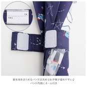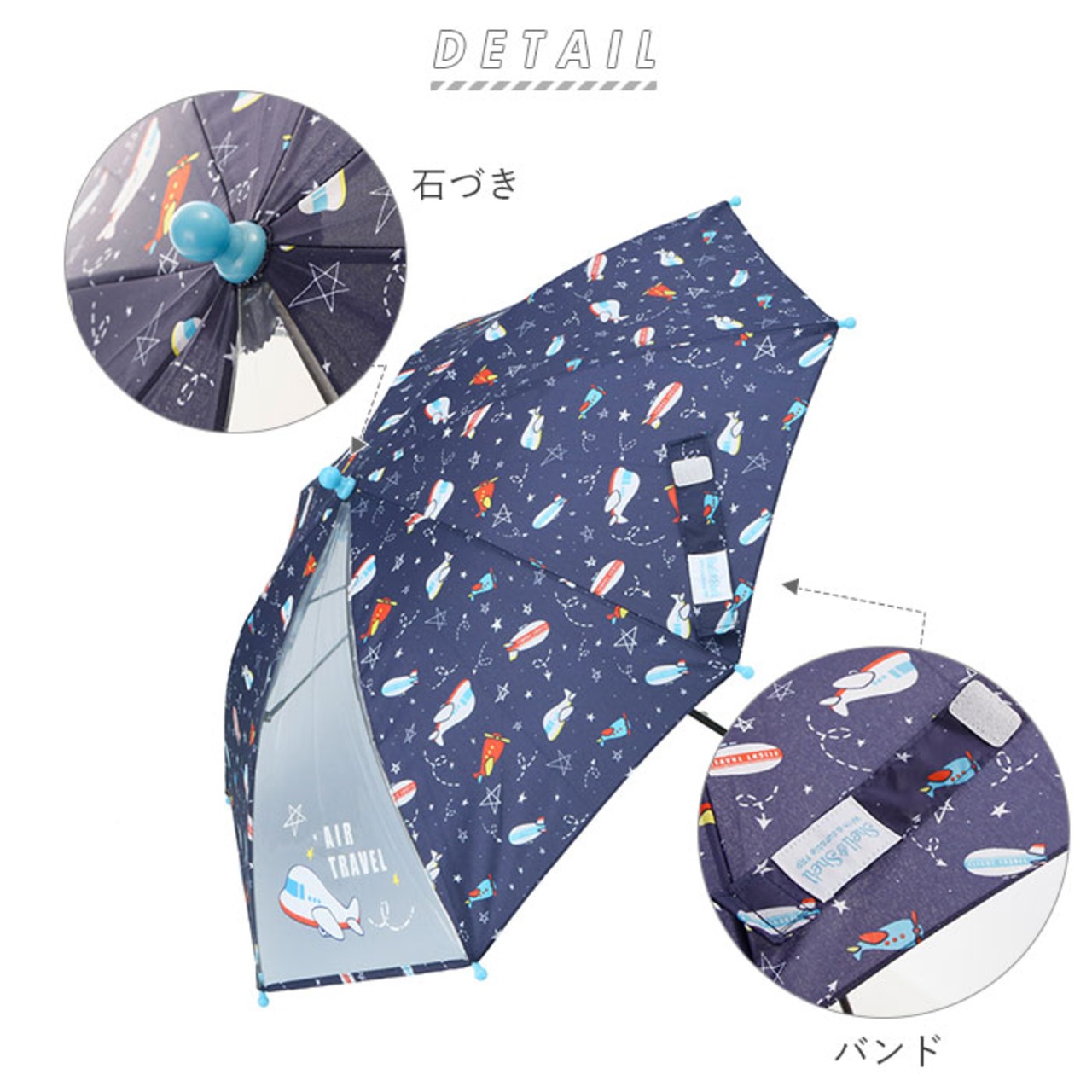 ・傘生地をまとめるバンドは太めにデザインされていて、お子様が留めやすい優しい仕様。ネーム付きなので、お友達の傘との取り違いも防げる。