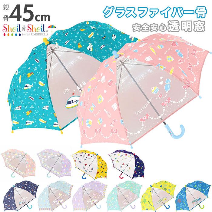 傘 子供 45cm 通販 長傘 子ども 通学 登校 手開き おしゃれ かわいい グラスファイバー骨 丈夫 幼稚園 保育園 ギフト プレゼント 入園祝い ガールズ ボーイズ キッズ 傘 Sheil&Sheil