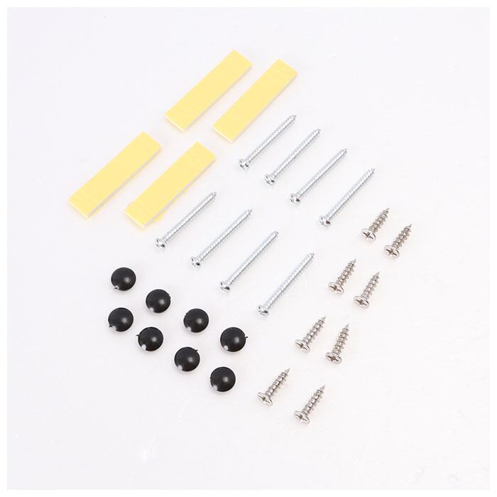 ・取り付けるための、大小それぞれ8本のずつのネジと、仮止め用の両面テープも付属。