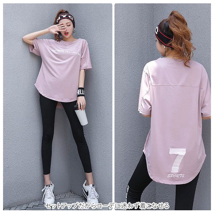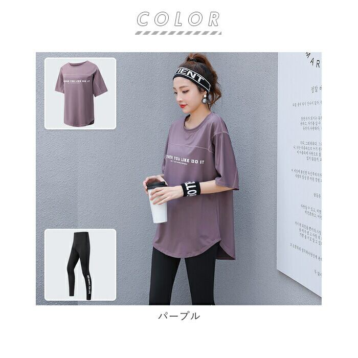・ジムでのトレーニングやランニング時に活躍!半袖トップス&レギンスのスポーツウェア2点セットが登場。