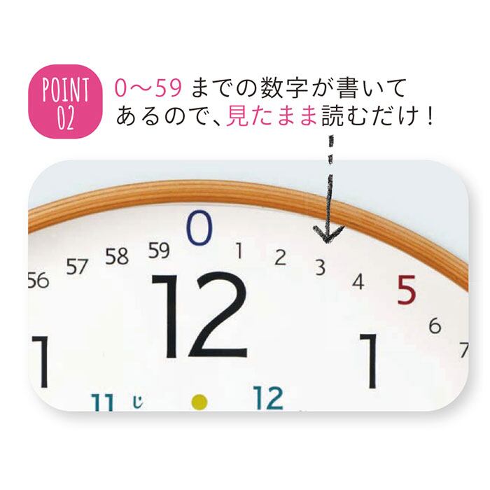 ・分針の先に0〜59まで数字が書いてあるので、見たまま読むだけ!