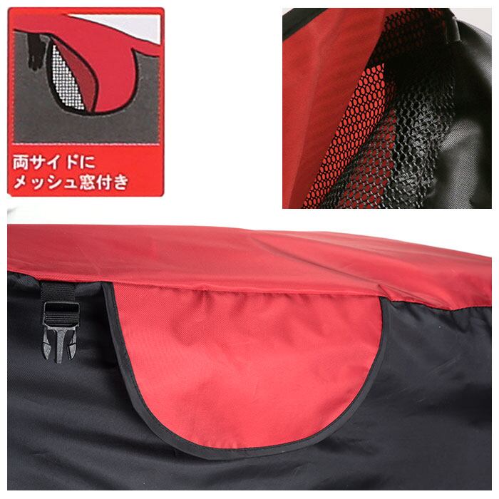 ・カバーの両サイドと後方、合計3つのメッシュ窓がサイクルカバーの中に入った風を効果的に逃がす「風スルー構造」を採用!カバーのめくれあがりを防止!