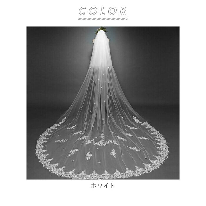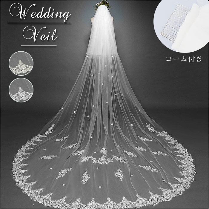 ウエディング ベール 通販 ウエディングベール ロング ヴェール Veil 刺繍 レース 金属コーム付 ホワイト 清楚 かわいい 可愛い きれい お姫様 ベールアップ ベールUP