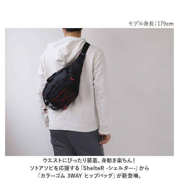 ・ウエストにぴったり装着、身動き楽ちん!ソトアソビを応援する「ShelteR -シェルター-」から「カラーゴム 3WAY ヒップバッグ」が新登場。