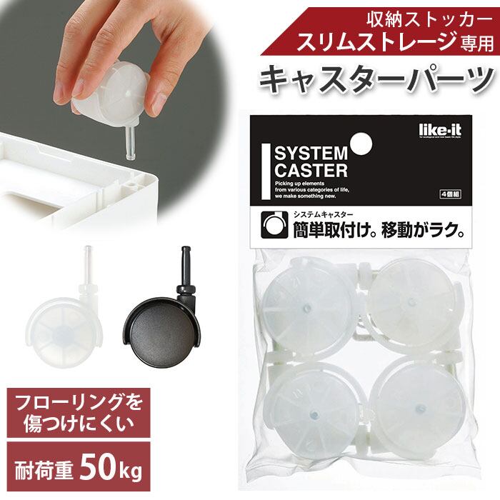 隙間収納 キャスター 通販 ライクイット like-it スリムストレージ用 システムキャスター LS-33 すきま収納 部品 パーツ 取り付け簡単 差し込むだけ 収納ケース リビング キッチン 冷蔵庫横 シンク横 洗面所 ランドリー 洗濯機横 洗濯機横 キッチン隙間収納 キッチン収納
