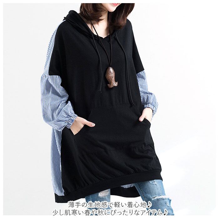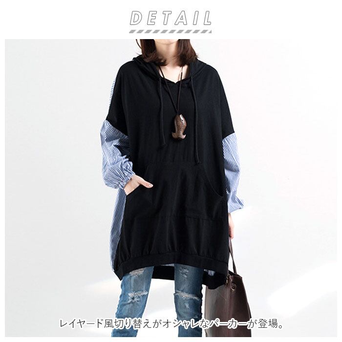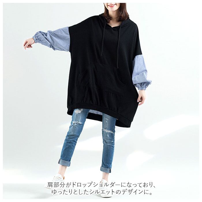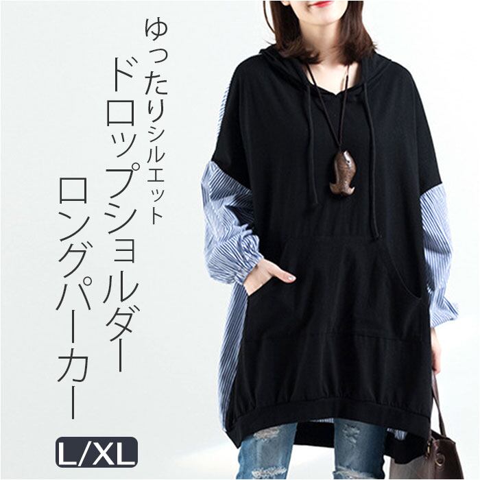 パーカー レディース 大きめ 通販 ロング丈 切り替え スウェット フード付き プルオーバー ドロップショルダー ゆったり 大きいサイズ 切替 ロングパーカー 長袖 秋冬 春 カジュアル 大人