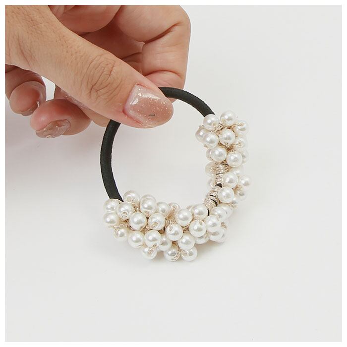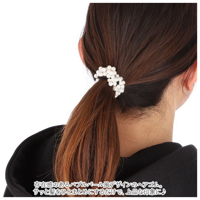 ・存在感のあるバブルパール風デザインのヘアゴム。