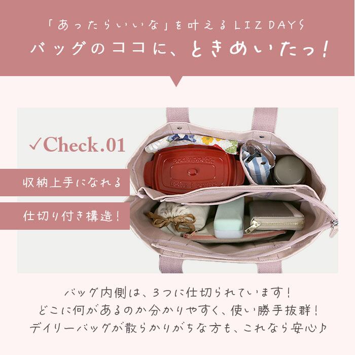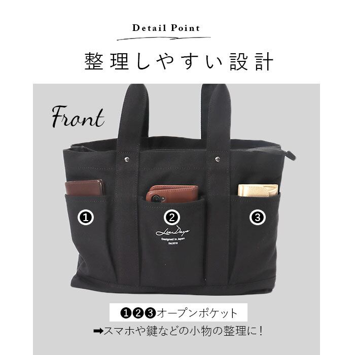 LIZDAYS 仕切り付きトートバッグ ポケットデザイン