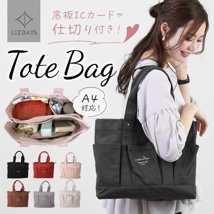 LIZDAYS リズデイズ トートバッグ lz-7033 通販 キャンバス 無地 大きめ 斜めがけ 大容量 A4 通勤 通学 布 コットン 仕切り 仕分け 底板 ICカード入れ キャンバストート キャンバスバッグ 自立 おしゃれ シンプル ナチュラル カジュアル 大人 かわいい 可愛い メンズ