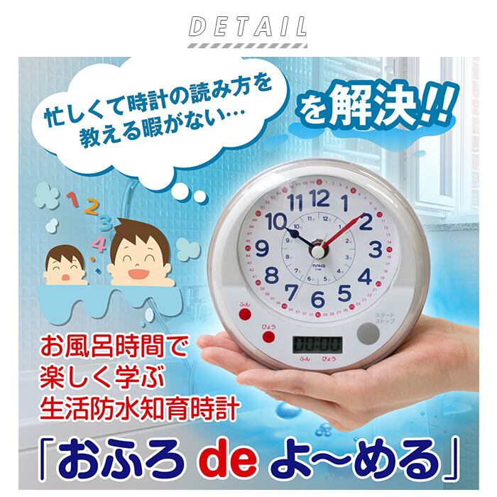 ・お子様との入浴タイムを有効活用!コミュニケーション解消に役立つ、防滴タイプの知育時計の登場♪(※生活防水 IPX2)