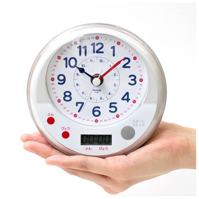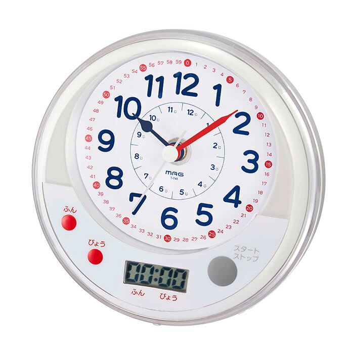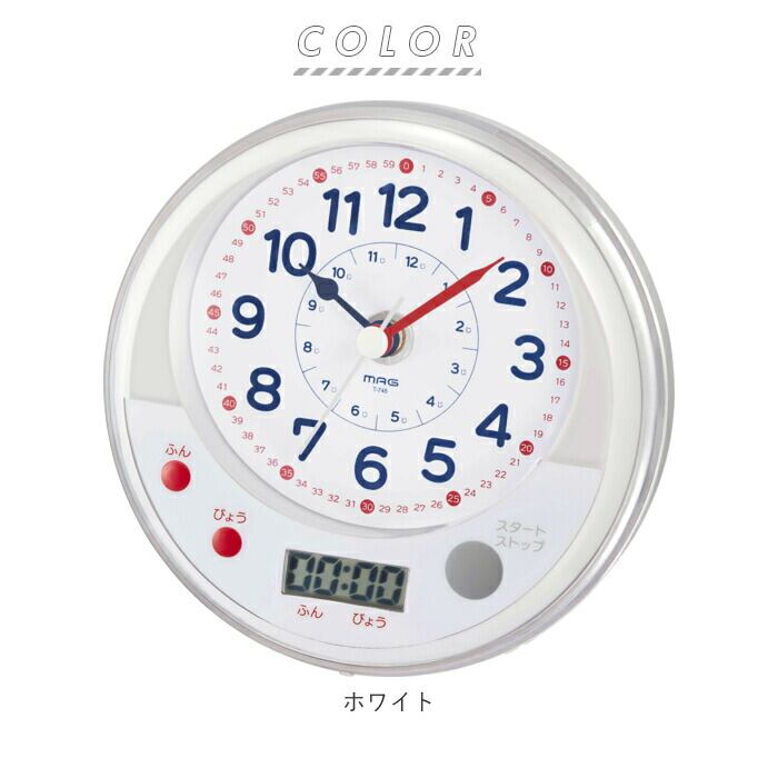 知育時計 よーめる 通販 お風呂 時計 防水 バスクロック 時計の読み方 学習 知育 学習時計 教育時計 保育園 幼稚園 入園 キッズ トレーニング 子供部屋 カウントダウンタイマー スタンド付き 吸盤 生活防水 IPX2 ステップ秒針 MAG マグ T-745 生活防水知育時計