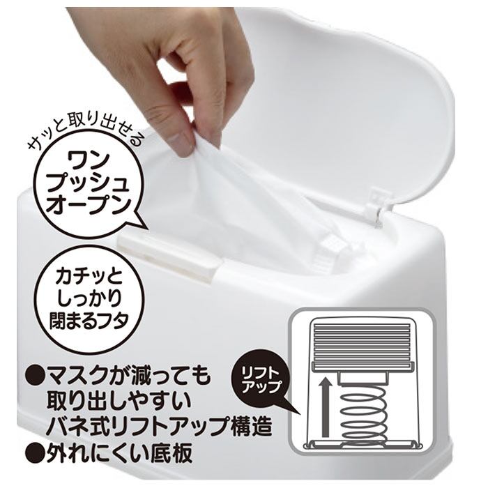 ・ストッカー底部分には、マスクが残り少なくなっても取り出しやすい「バネ式リフトアップ構造」を採用。
