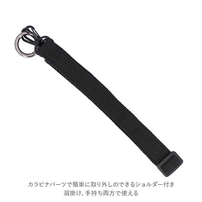 ・カラビナパーツで簡単に取り外しのできるショルダー付き。肩掛け、手持ち両方で使える。