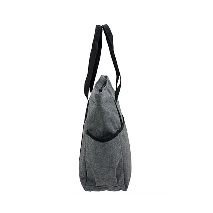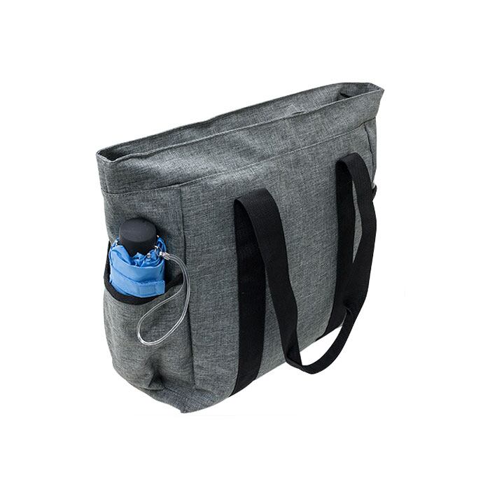 ・ハリ感のある杢調ポリエステル生地に、黒のハンドルテープを合わせたシンプルデザイン。カジュアルでもビジネスでもコーディネート自在。