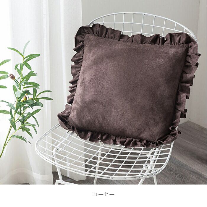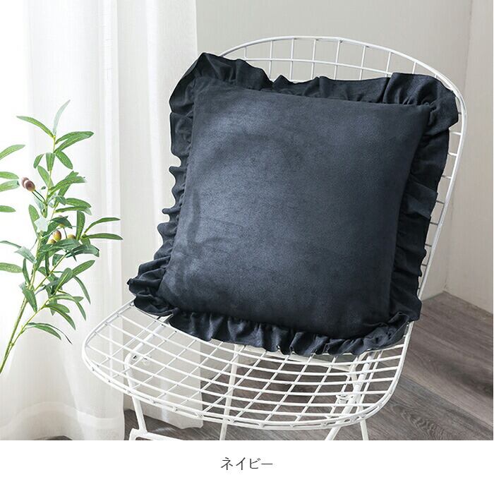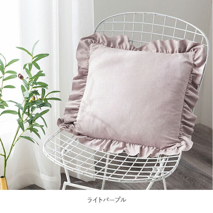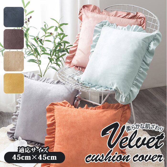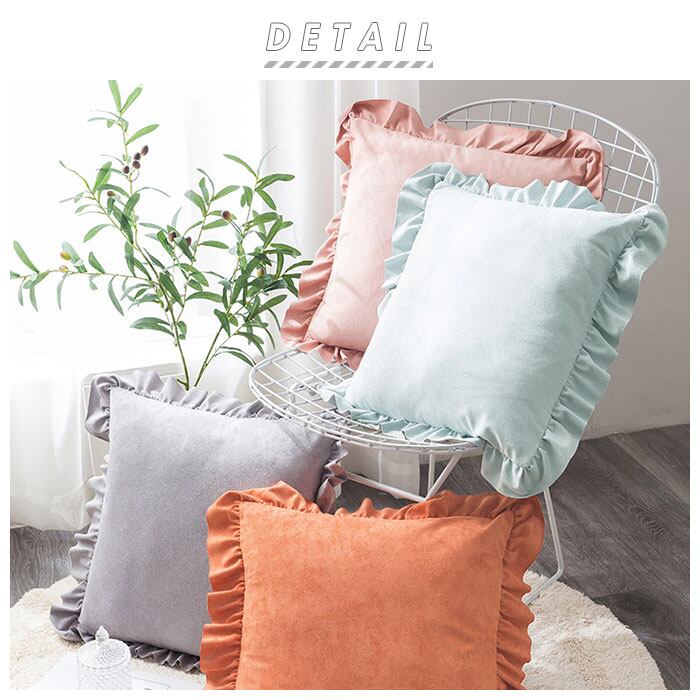 ・ベルベットの素材が柔らかくて肌触りが気持ちが良い、まわりのフリルがラブリーなクッションカバー。