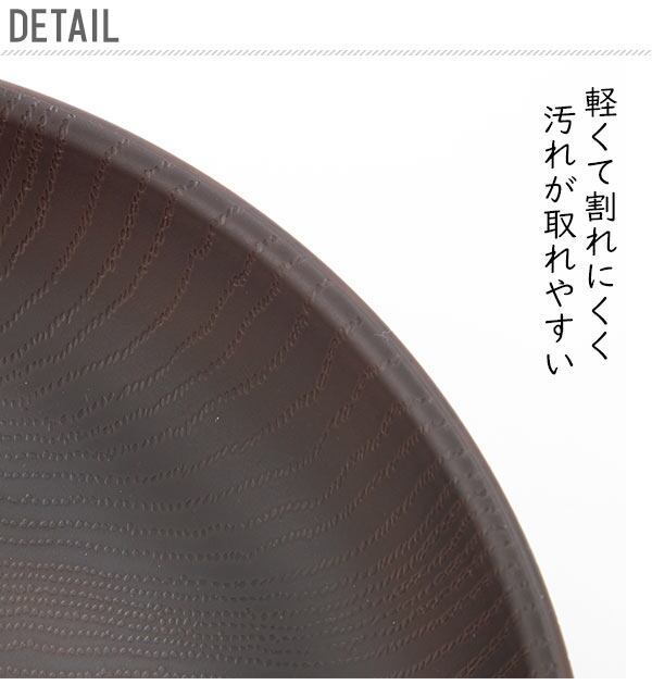 木目調で、食洗機・電子レンジ使用OKの扱いやすいランチプレートです。カレー皿から和食、パーティー用のサラダなど、色々と応用が利くラウンドプレート。