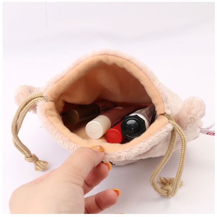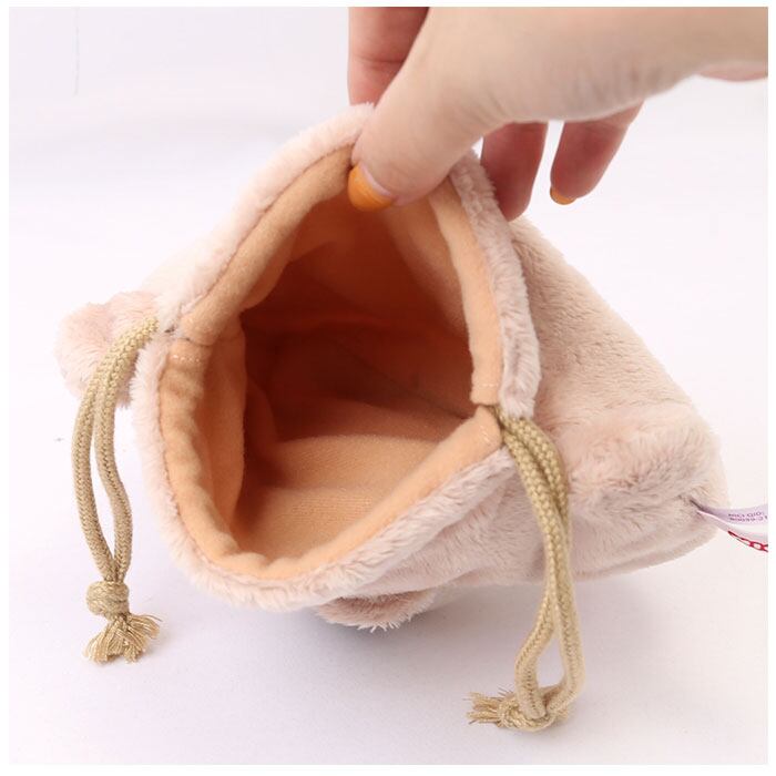 ・巾着の中に小物を詰めることで、ポーチがふっくらと丸みのある、よりぬいぐるみらしいフォルムに変身!腕に掛けて持っているだけで、道行く人が振り返る抜群の可愛いらしさ♪