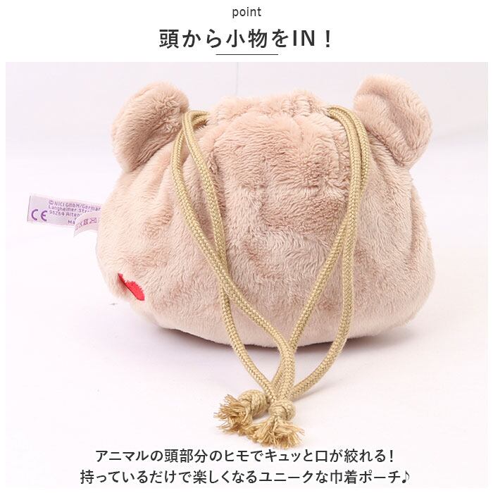 ・アニマルの頭部分のヒモでキュッと口が絞れる!持っているだけで楽しくなるユニークな巾着ポーチ♪