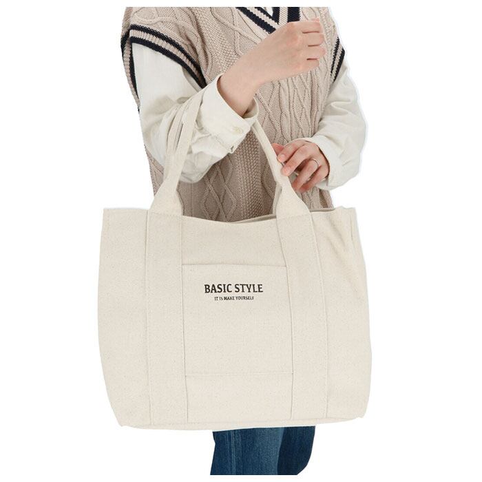 ・カジュアルだけど大人っぽく、そして気取らない、キャンバス風生地のトートバッグ。