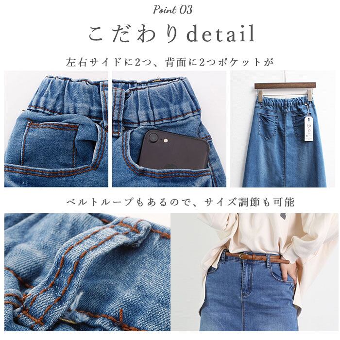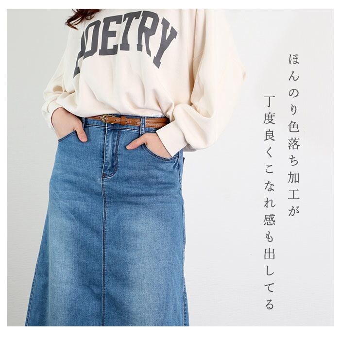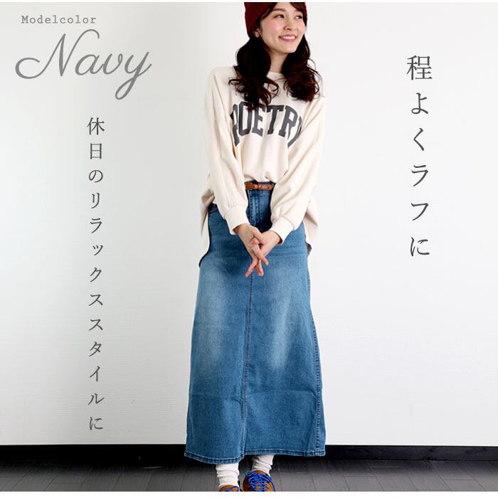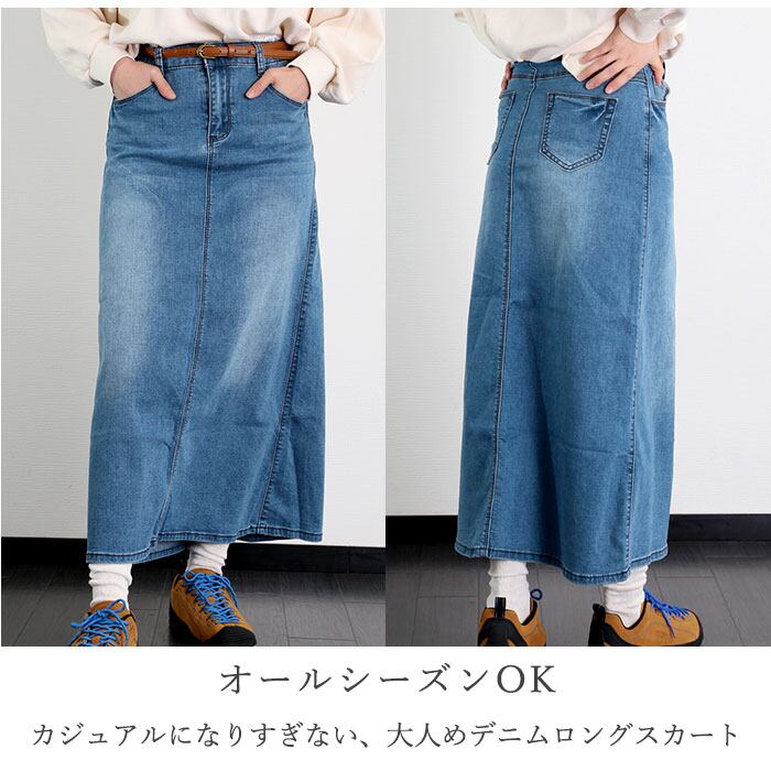・ラフなデニムの素材感に、オトナ可愛さを程よくブレンド!オールシーズン着用できるデニムロングスカート。