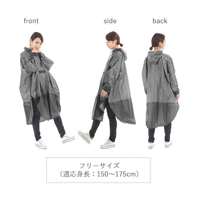 ポンチョになっているため、リュックサックやショルダーバッグを担いだ状態で上から着ることができ、一緒に荷物をカバーできます。