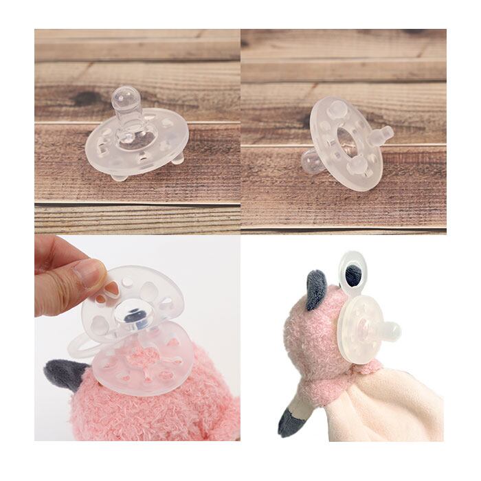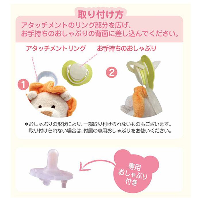 ※おしゃぶりの形状によっては取り付けられないものもございます。その場合は、付属の「専用おしゃぶり」をお使いください。