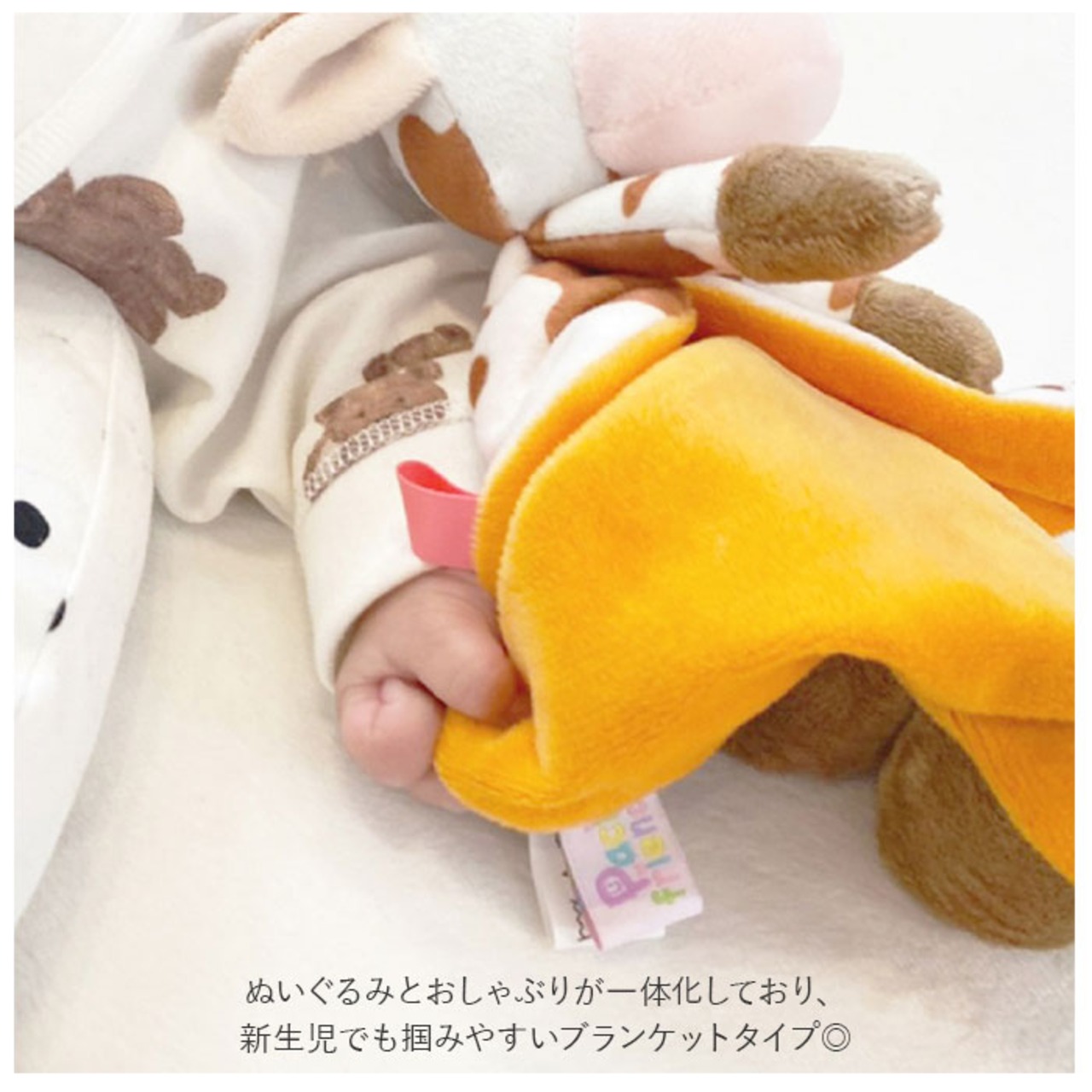 ・ぬいぐるみとおしゃぶりが一体化しており、新生児でも掴みやすいブランケットタイプ◎