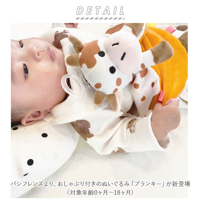 ・パシフレンズより、おしゃぶり付きのぬいぐるみ「ブランキー」が新登場。(対象年齢0ヶ月〜18ヶ月)