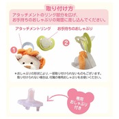 ・パシフレンズ専用のおしゃぶり1個付き。お手持ちのおしゃぶりを取り付けることもできる。(※おしゃぶりの形状によっては取り付けできない物もあります。)