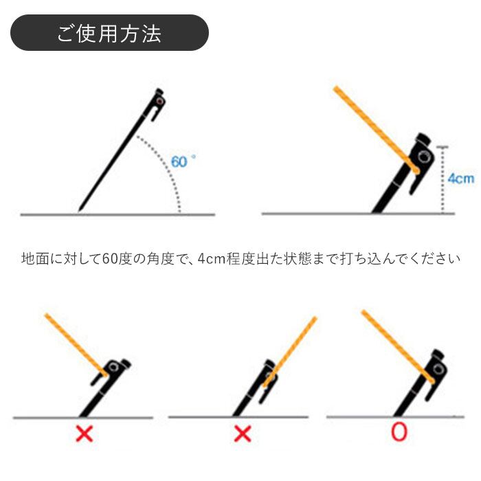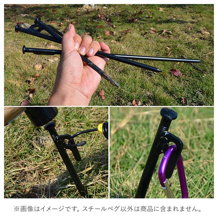 ・草地はもちろん、砂利などの固い地面でも深く、強く、曲がらず打ち込むことが可能なスチールペグ!
