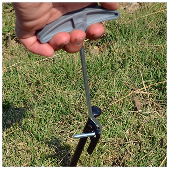 ・先端は円錐形の突起になっているので、しっかりと地面に食い込ませることができる。