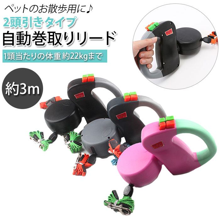 犬 リード 伸縮 通販 2匹用 自動ツインリード ツインリード ペット用 ペット 伸縮リード 多頭用 ワンタッチ 繰り出し ストップ 巻き取り 簡単操作 自動 散歩 ブラック ピンク グレー