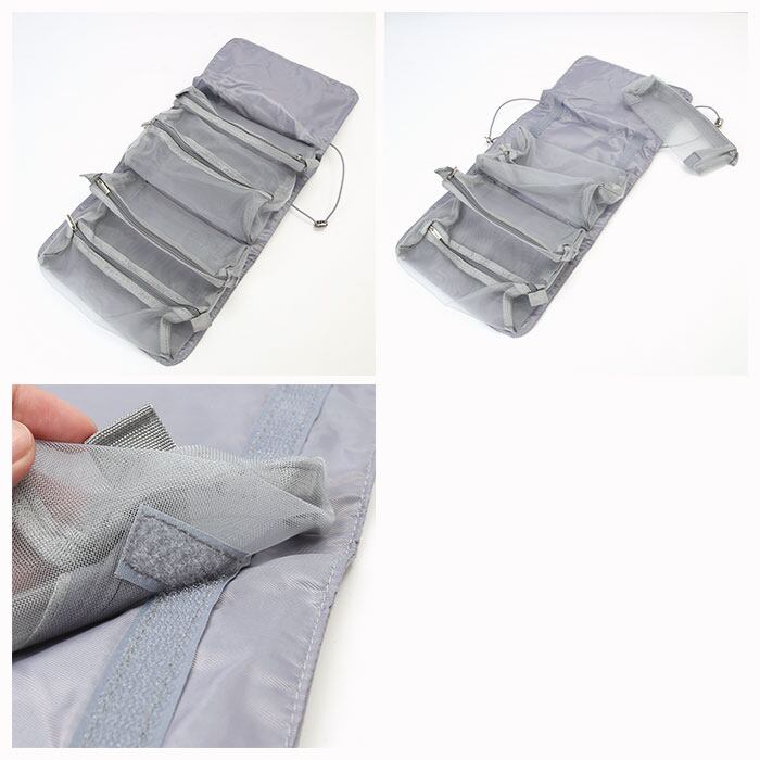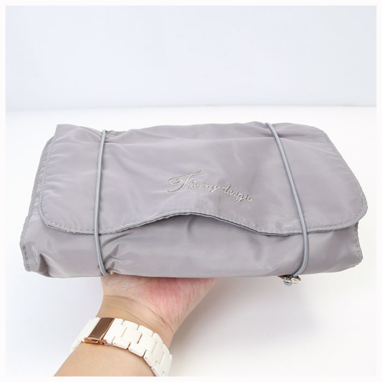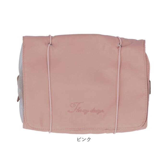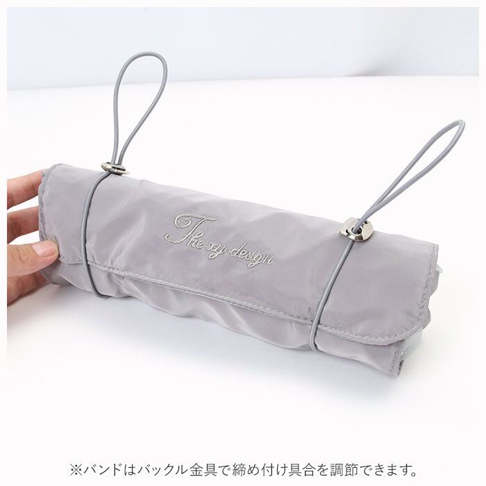 ・かさばるコスメ類もクルっと丸めてひとまとめに。ゴムバンドでパチンッと留めれば、旅行カバンの中で小物が散らばらないから安心!(※バンドはバックル金具で締め付け具合を調節できます。)