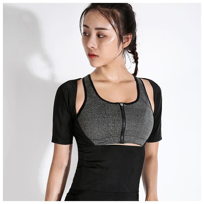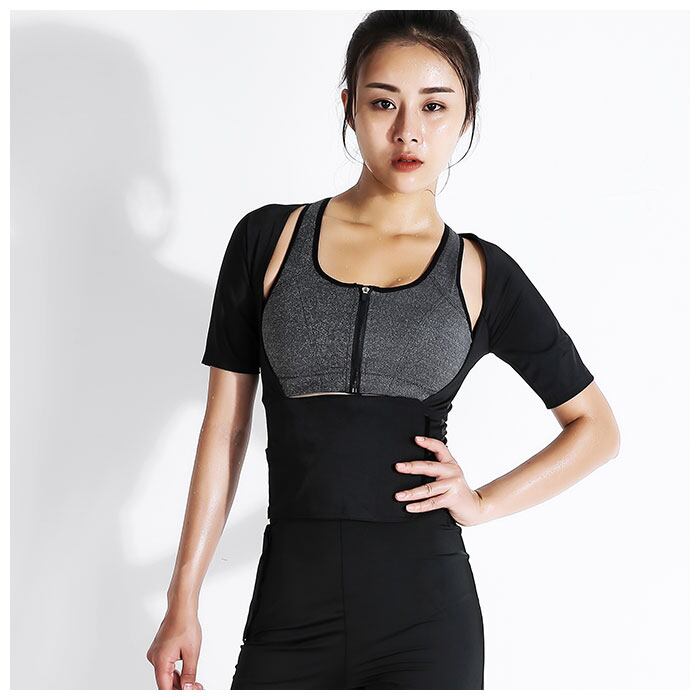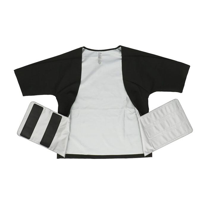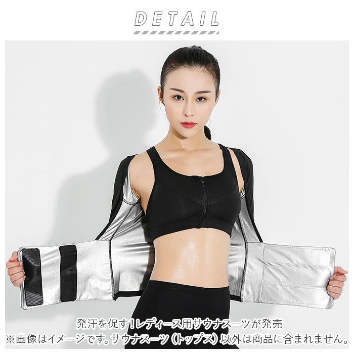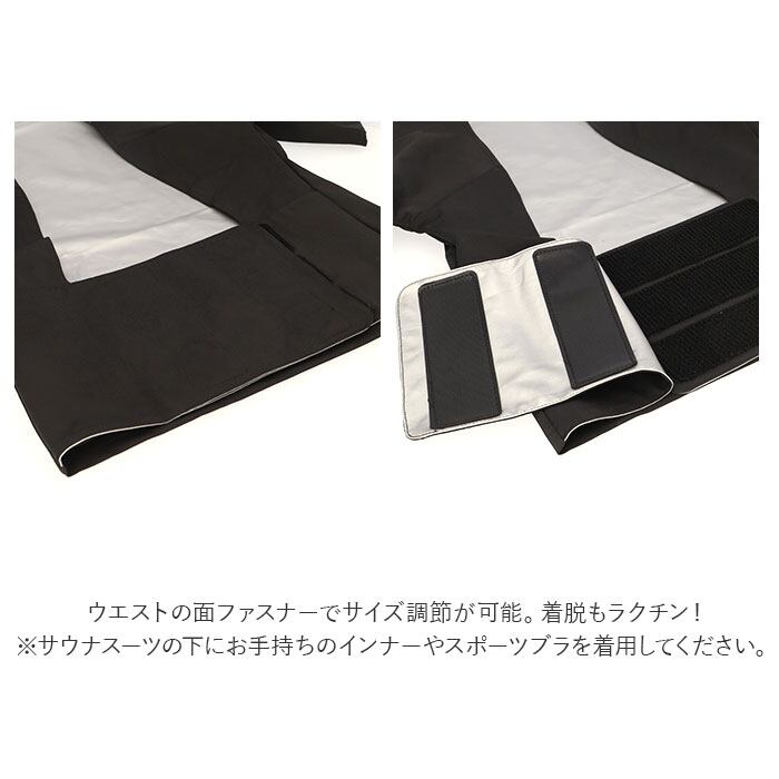 ・ウエストの面ファスナーでサイズ調節が可能、着脱もラクチン!(※サウナスーツの下に、お手持ちのインナーやスポーツブラを着用してください。)