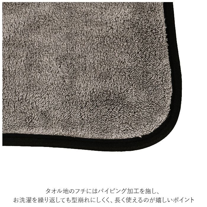 ・タオル地のフチにはパイピング加工を施し、お洗濯を繰り返しても型崩れにしくく、長く使えるのが嬉しいポイント。