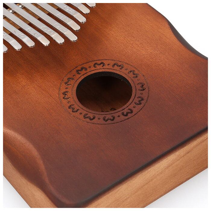 ・カリンバ本体には、手のひらに優しく馴染むマホガニー材を使用。温かみのある音色と、使い込むほどに味わい深く変化する色合いは天然木ならではのもの。